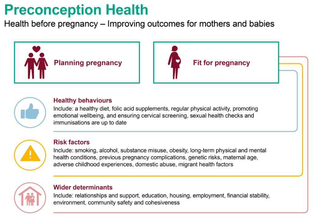 - More infants will have the best start in life regardless of socio-economic background if the health of all men and women are addressed at the pre-conception stage.